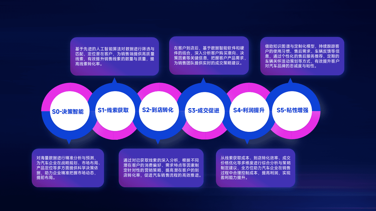 通过拓宽潜在客户来源、、优化线索分配并提高到店转化率,,,以增强销售效率。。。。同时,,,利用线索数据不断优化分析模型,,,,有效提升转化率,,,,扩大营销影响力。。。。